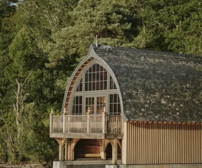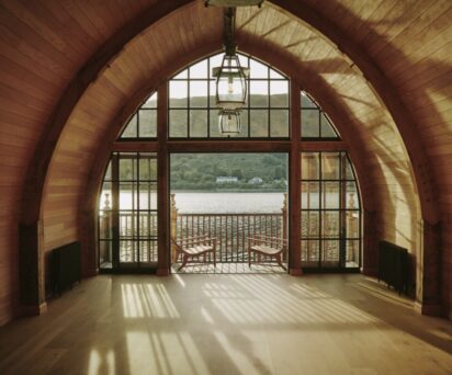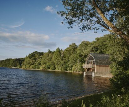 The Boathouse, a vast structure with a whimsical hull-shaped roof, makes an inviting spot for sundowners on the Loch. A truly unique location for dining, recreation and relaxation…