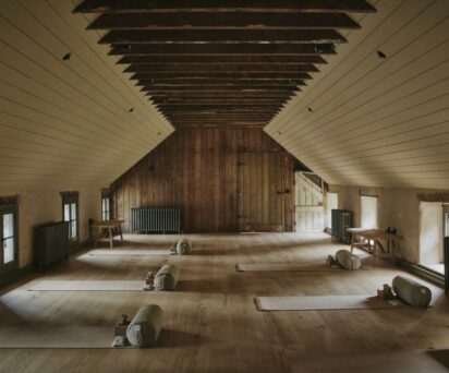 The Boathouse is a wonderfully unique space for meditation and yoga – the terrace offers a spectacular view along the water …..