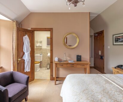 Willow is a large bedroom with a king size bed, that can be turned into 2 single beds if necessary. It has an en-suite bathroom with shower over bath. Private dining can be set up in the room upon request. Views are to front of Lodge over the grounds and surrounding mountains.