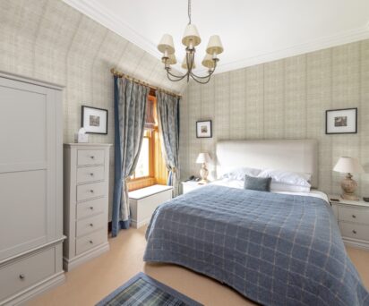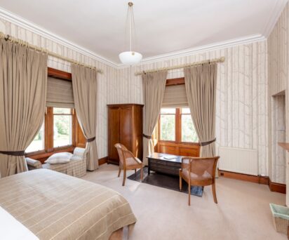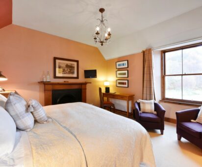 Birch is a medium sized bedroom with a king size bed which can be twinned if necessary. The en-suite bathroom has a shower cubicle. Views are to front of Lodge over the grounds and surrounding mountains.