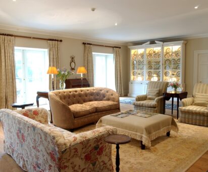 The main house has 9 well appointed ensuite bedrooms, plus the adjacent property, Larch Cottage has one further ensuite bedroom, plus two staff bedrooms for your chef and assistant.