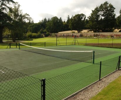 Upstairs there is a very popular games room with a snooker table and table tennis table. There is also an outdoor tennis court and croquet lawn.