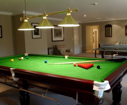 The drawing room and galleried hall provide sufficient space for groups to be together in front of roaring log fires or with french windows to fling open on those occasional warm sunny days. There is also a snug for time out to watch television, DVDs or for children to play with the selection of games.