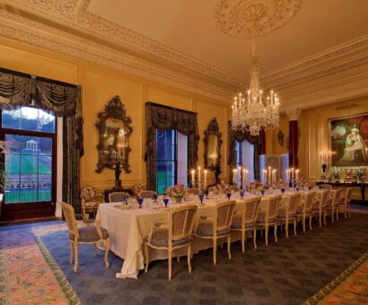 The house has long been admired as the most lavish Regency mansion in Ireland and, after eight years of restoration, Ballyfin re-opened in May 2011 as a small country house hotel like no other. It offers the very best of Irish hospitality in the most beautiful surroundings imaginable. The house has been furnished with a collection of Irish art and antiques from around the world, fine Irish Mahogany, French chandeliers and mirrors by Thomas Chippendale. The result is spectacular, and today one of Ireland’s most endangered great houses has emerged ready for the current century, a place of grandeur, yet warm, providing the kind of welcome envisaged when the house was first built.