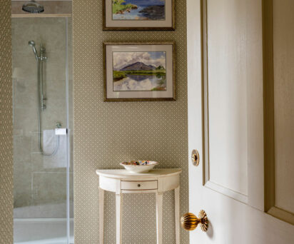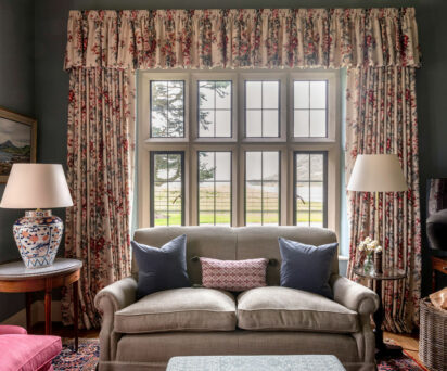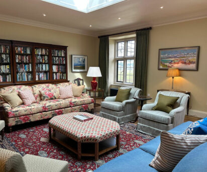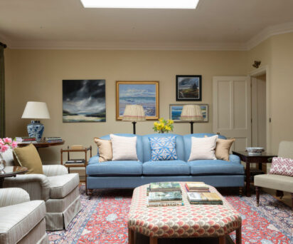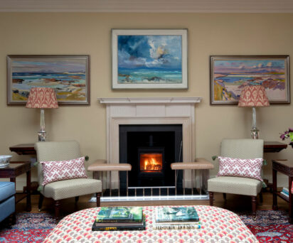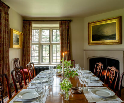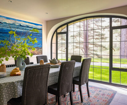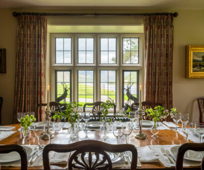 Benmore Lodge has several living areas. The intimate sitting room with wood burning stove and TV offers views across the lawns to Loch Ba and beyond. At the heart of the house is the large and well-equipped family kitchen, with its bespoke picture window, and offers an informal dining table and breakfast bar. In the evening, the dining room complete with a wood burning stove and dining table comfortably seats a dining party of 10, before you head through to the beautifully appointed drawing room to relax after dinner.