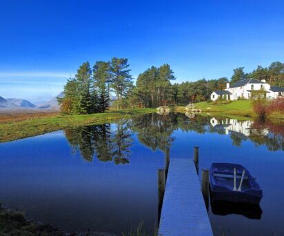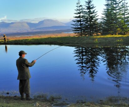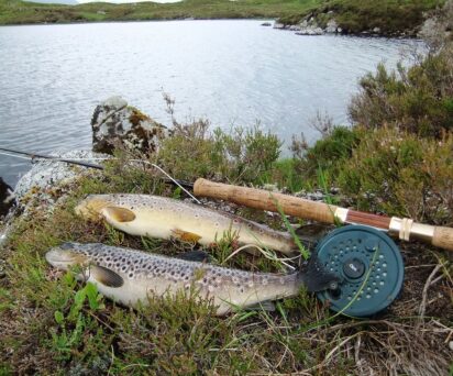 Black Corries Estate has over a dozen wild brown trout lochs, varying in size and providing good sport. Some lochs contain an abundance of smaller trout, which are ideal for keeping children interested, whereas others contain larger specimens of over a pound plus. Due to the locations of these, a reasonable level of fitness is required. A stocked rainbow trout pond sits below the lodge, containing fish of considerable size. Ideal for an evening cast.