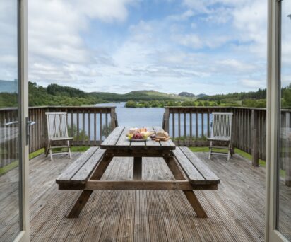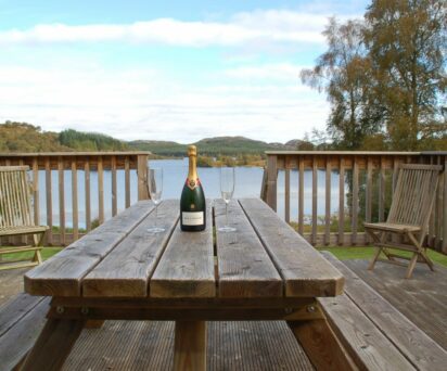 There is a decking area with picnic table and steps leading down to the garden and loch. The property includes use of a rowing boat and Canadian canoe. Boat Disclaimer must be signed. Loch Knockie is a peaceful, tranquil place and we ask guests to respect this at all times.