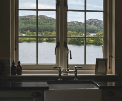 Walk through the front door and down the stairs into the main reception area and you will be taken into another world! You are immediately taken aback by the panoramic view of Loch Knockie and the hills beyond. One of our regular guests described it as the best view in Scotland!