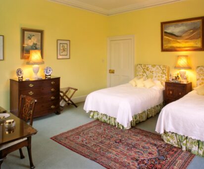 Carnell originally belonged to the Wallace family, ancestors of the present owners, for whom the original 16th Century Towerhouse was built. The property was extended in 1843 and over the years the house has been tastefully modernised to cater for the most discerning of guests. The estate sits amidst 2000 acres of prime agricultural land and the Mansion House itself is surrounded by extensive parkland and mature gardens. The main feature of the park is the Lime Tree Avenue, which has been planted to represent the two Scottish Squares at the Battle of Dettingen in 1743, complete with the two officers on either side.