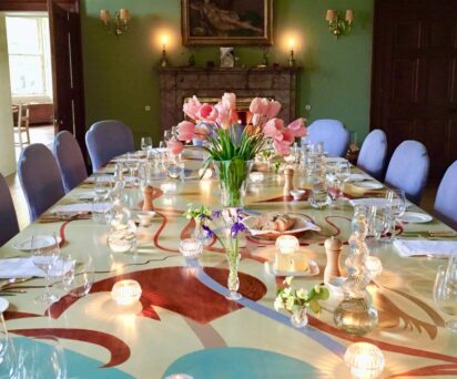 The dining room table at Carskiey can seat 16 guests comfortably.