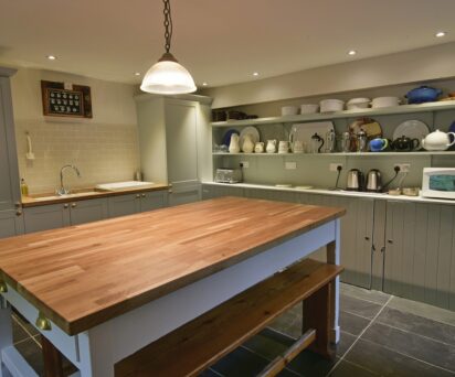 Kitchen with aga, cloakroom/gunroom, drying room.