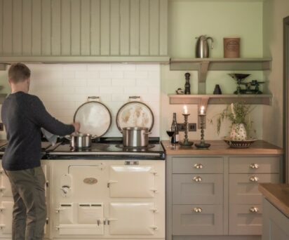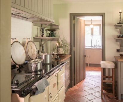 The well-equipped kitchen has a large AGA, Dishwasher, Oven and two ring electric hob, Fridge/Freezer, Coffee machine and Washing machine/dryer.