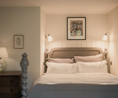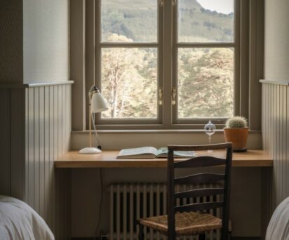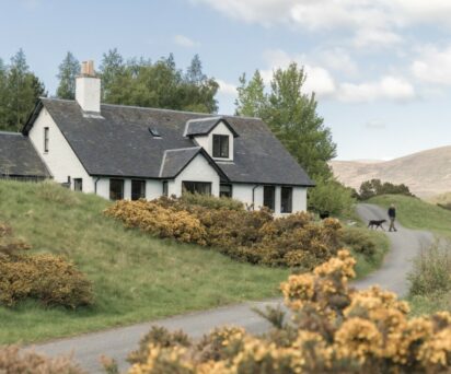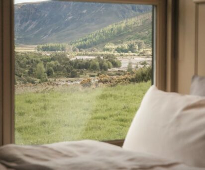 The ideal base for a sporting week or family holiday in the Cairngorms National Park, Coire Domhain is decorated in traditional Highland style – the muted colour palette of greens and grey’s mirrors the far-reaching views of the magnificent landscape on your doorstep. Walls are panelled tongue and groove, floors are clad in seagrass while soft tartan drapes frame the view.