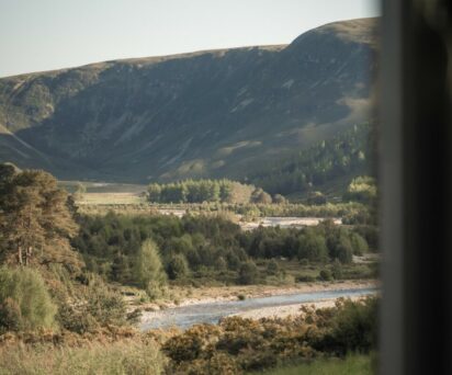 Coire Domhain is in the heart of Glenfeshie Estate it enjoys far reaching views up Glenfeshie, over the River Feshie and beyond. Here you’ll see new native trees springing to life along the river and up the hillsides – a home for wildlife of all kinds. Glenfeshie sits amidst the wild surrounds of the Cairngorns National Park, which stretches across undulating mountain tops, expansive wetlands and thick, native forests, the national park is home to a rich array of wildlife and local culture.