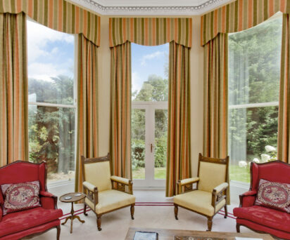 This suite has a small sitting room adjacent to the bedroom which contains a double sized sofa bed, ideal as extra sleeping accommodation for families with young children. Private bathroom located just across the corridor.
