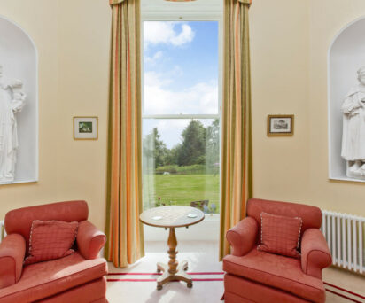 The spacious public rooms include a drawing room, library, dining room seating 20 and a breakfast room.