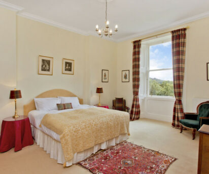 Providing accommodation for up to 18 guests, the Castle has plenty of public rooms including a sitting room, well stocked library, elegant dining room over-looking the garden and a reception room, all with their own fireplaces. Each bedroom is individually designed and has a character all its own. Should you require additional accommodation, Dalnaglar have estate cottages available to rent bringing the total accommodation capacity up to 50 guests. Perfect for extended friend or family gatherings or corporate team building events.
