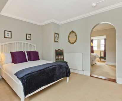 This suite is completely private from other guests, being up a flight of stairs from the first floor. These interconnecting rooms have drapes in the arch dividing the two bedrooms, giving each a little more privacy. Both rooms share a dedicated bathroom just across the landing, making this suite ideal for families with young children. Double bed in one room and twin beds in the other.