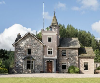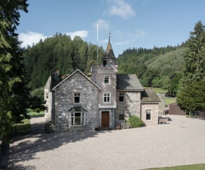 Delnabo Lodge, on the Delnabo Estate is set in the heart of the Cairngorm National Park. This 19th century turreted lodge has been recently refurbished to a beautiful standard and offers extremely comfortable accommodation for up to 18 guests.