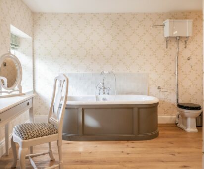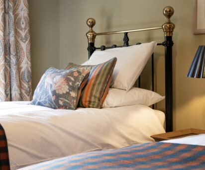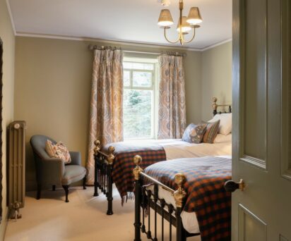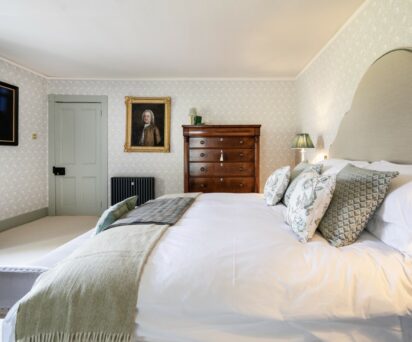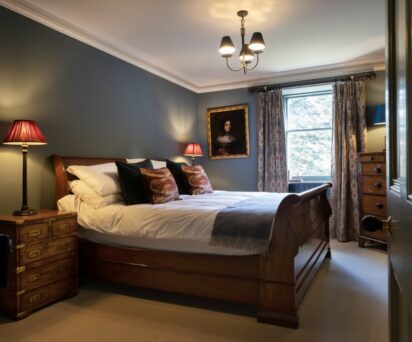 Up to a maximum of two well behaved dogs can be accommodated in The Boot Room by prior arrangement. We request dogs are not left unattended at any time. Dogs must always be kept under control and kept on a lead around livestock. Any dog fouling / faeces in and around the house grounds must be cleared without delay and it is the dog owner’s responsibility, not that of the housekeeping team. Any additional cleaning required will be charged.