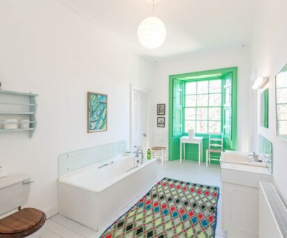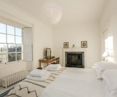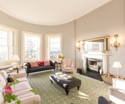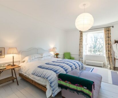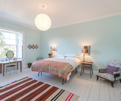 This welcoming house has a large stone-flagged and pillared entrance hall, a stylish two-storey hanging staircase and several beautifully light and spacious oval rooms. The house has been imaginatively refurbished and decorated in a light and occasionally quirky style, with fine fabrics and a selection of antiques dotted throughout. With fine cotton bed linen and original deep claw-foot baths, this is a wonderful retreat to relax in at the end of a fabulous day.