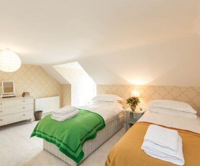 - Second Floor – two double rooms including one oval room with gorgeous hand-painted walls, and a twin room