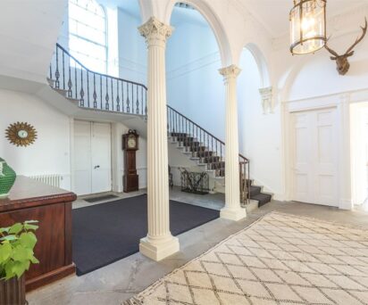 Entering this idyllic home, you will find the spectacular stone-flagged hallway with its impressive staircase. Exploring the ground floor, you will discover the light, attractive and spacious oval drawing room which features an open fire, plenty of seating and glorious views. The magnificent high-ceilinged dining room has a large dining table, an open fire and wonderful views, and is the ideal location for sharing a celebratory meal. There is also a TV room and a breakfast room, both of which are perfect for relaxing in. There is also a boot room and bathroom on the ground floor.