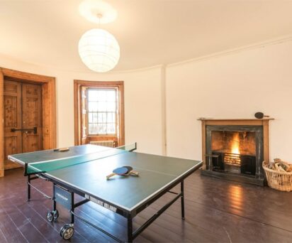The lower ground floor has fully equipped kitchen with additional dining space, and a games room where you can try your hand at table tennis. There is also a twin bedroom on this floor as well as a utility room, larder, bathroom and separate WC.