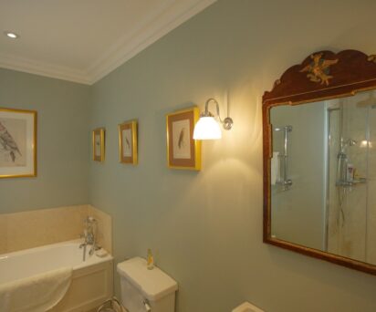 Twin bedroom – Separate shower with bath, wash hand basin & WC (bathroom across corridor)