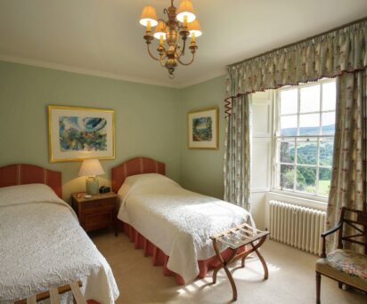 Edradynate House commands an enviable position above one of Scotland’s most famous salmon rivers, the River Tay and enjoys spectacular views across the wooded valley and beyond.
