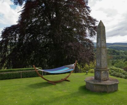 The large reception rooms enjoy stunning views across the grounds as well as open fires. The terraced garden, meandering stream and woodland make Edradynate House a wonderful location for holidaying.