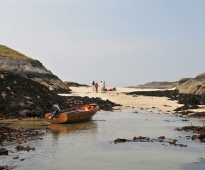 This island’s secluded paths through the woodland and over the open hills provide an opportunity for some energetic hill walking, while at the South West corner of the island there is a beautiful white sandy beach, which becomes fully exposed at low tide and where it is often warm enough to swim in the summer.
