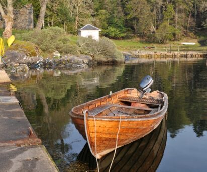 This island’s secluded paths through the woodland and over the open hills provide an opportunity for some energetic hill walking, while at the south west corner of the island there is a beautiful white sandy beach, which becomes fully exposed at low tide and where it is often warm enough to swim in the summer. It is the perfect retreat for those seeking peace and tranquillity and who simply wish to relax in comfortable surroundings away from the pressures of everyday life.