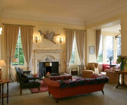 Entrance Hall, Large central hall with seating area, Drawing Room with open fire, Dining Room with open fire, Kitchen, Laundry Room, Drying Room, WC, Estate Office.