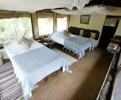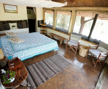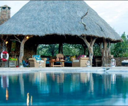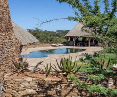 This family owned lodge along with six cottages sleeps up to 18 guests and overlooks the Ewaso Nyiro river and the natural salt lick, which is rich in wildlife. The accommodation has been designed by the owners, using natural materials found on the ranch, soft furnishings made by local social enterprises and paintings provided by Lavinia Grant, a painter and author living on the property since 1969. All operations including the chemical/chlorine free swimming pool are run exclusively on solar electricity. Food is hearty, fresh and seasonal with all vegetables coming from the 100% organic lodge garden. Meat is locally sourced and breads, cakes and desserts are all homemade. Special diets can be accommodated.