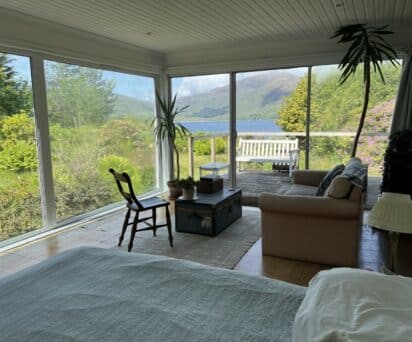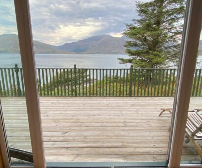 The Green House, a delightful one-bedroom cabin, which stands in the grounds of Glenelg House, in a secluded position at the most south westerly point, has been a huge success as a self-catering rental. With its own private footpath access and fantastic panoramic views, it is the perfect place to watch the sun go down.