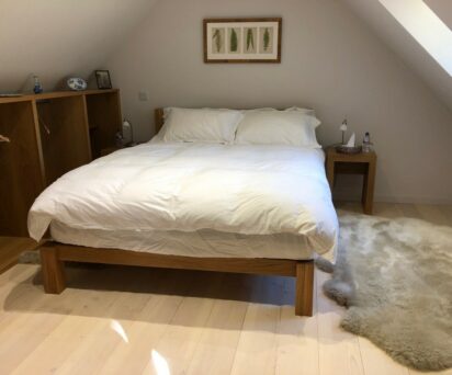 Access to the first floor is via an open plan wooden stairway leading to 2 x King Size bedrooms and a bathroom with feature bath and separate shower cubicle.
