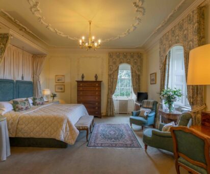 There are seventeen guest bedroom suites at Glenapp Castle. All of these suites are unique in their own style, all individually designed and lavishly furnished and equipped to the same high standard.