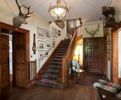 The reception rooms include a fine drawing room with birch log fire, dining room, breakfast room and games room with a half-size billiard table. There is also a conservatory and the lodge is well equipped with an excellent gun and rod room, drying room and kitchen with Aga.