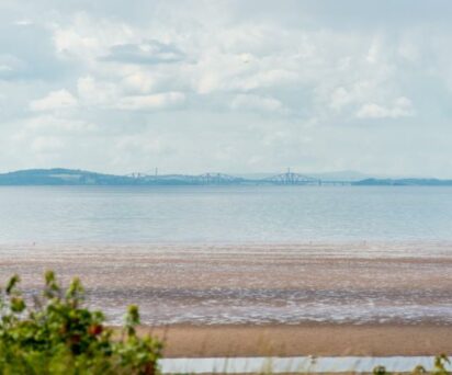 Bedroom three, generously sized with a built in closet and day bed, has an uninterrupted view of the water that stretches for some 20 miles out to the Forth Bridges.