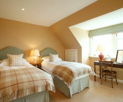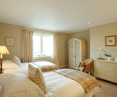 Downstairs there is an additional twin bedroom. Please note that it does not have a dedicated bathroom and would need to share with one of the upstairs bedrooms.