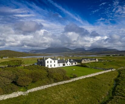 There are six twin and two double rooms, all named after lochs on the Estate. Many of the bedrooms offer grand vistas across Grogarry Loch to the Atlantic Ocean and over the croft land that forms the bedrock of the local community.