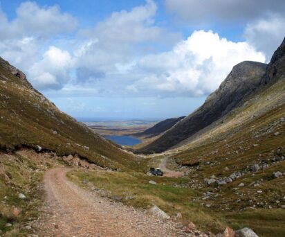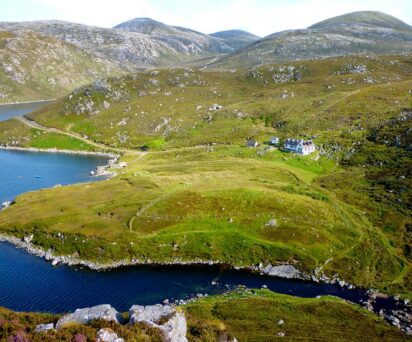 The 40-minute journey along the track is a wildlife safari in itself, with regular sightings of golden eagles and red deer framed against the dramatic views north towards Uig Sands and the panorama of the North Harris Hills to the south. The start of the track is about 50 minutes from Stornoway airport and ferry.