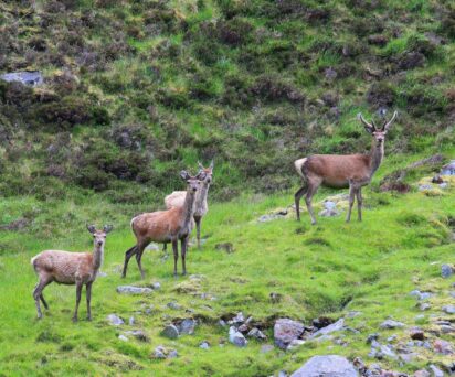The estate offers stalking and shooting in remarkable scenery. The current stalking target is at least 40 stags and 30 hinds each season. Grouse are shot over pointers or walking up. Excellent snipe and woodcock shooting is available and the estate welcomes parties of guns in November, December and January when good mixed bags may be expected.