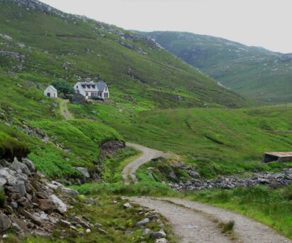 Hamanavay House is reached via an eight-mile Land Rover track, which transports visitors to a completely peaceful, highly secluded, wild paradise. A four-wheel-drive vehicle with good clearance is needed to drive the 40 minute track to the house. If guests are unable to bring a 4×4, we’ll be happy to help you hire one.