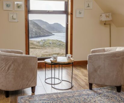 The house is reached via an eight-mile track, transporting you to a completely peaceful, highly secluded, wild paradise. Loch Tamnabhaigh is remote sea loch in a vast wilderness. This is the ideal place to escape the stresses and strains of everyday life.