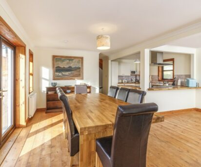 Dining room with a collection of books on the Hebrides, board games and puzzles