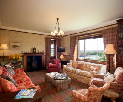 The lodge commands an outstanding position high above the village of Lairg. The views from the Lodge are exceptional and give a great panorama of Loch Shin.
