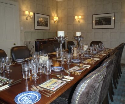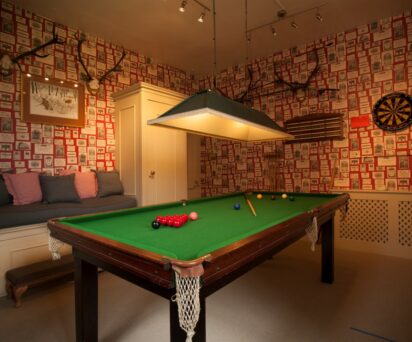 There is a sitting room with open fireplace, a television, video DVD and satellite, and a large selection of books and games. The drawing room with open fireplace and a large picture window looking north up Loch Shin. Dining room that can seat 14. Excellent drying room and games room with a small billiard table & dart board.