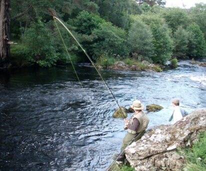 There are two beats (four rods per beat) and over thirty named pools on the Upper Shin. The Lairg Estate water is all double bank and most of the pools can be fished from either side. The fishing is for fly only. Most of the pools can be fished from the bank without wading, but a few require some wading. We recommend thigh waders and it is advisable to use a wading stick in certain pools.